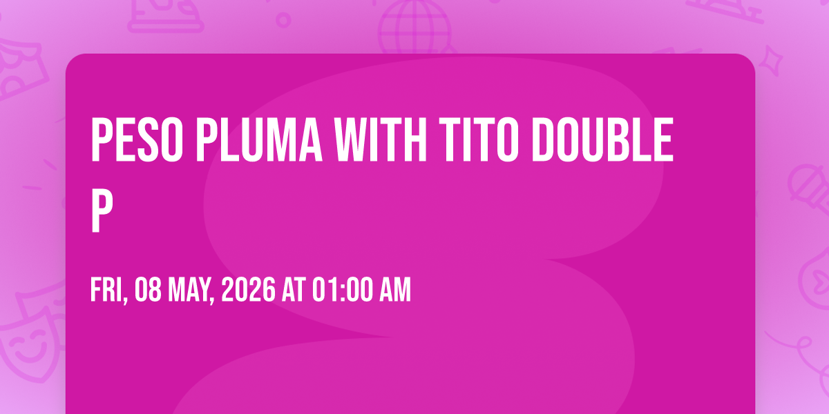 π Location: 41.8806, -87.674β¨ Discover the extraordinary at Peso Pluma with Tito Double P, where magic meets reality in ways you've never imagined! ποΈ Set in United Center nestled in bustling Chicago, IL, this event promises to be a landmark occasion. π Taking place on May 9th, 2026 at 01:00 AM, it's going to create an atmosphere where every moment becomes a cherished memory. π Immerse yourself in an experience crafted with attention to every detail, designed to surprise and delight at every turn. They have worked tirelessly to ensure this event exceeds all expectations, bringing together elements of entertainment, innovation, and pure joy. π Don't miss your chance to be part of this remarkable journey!