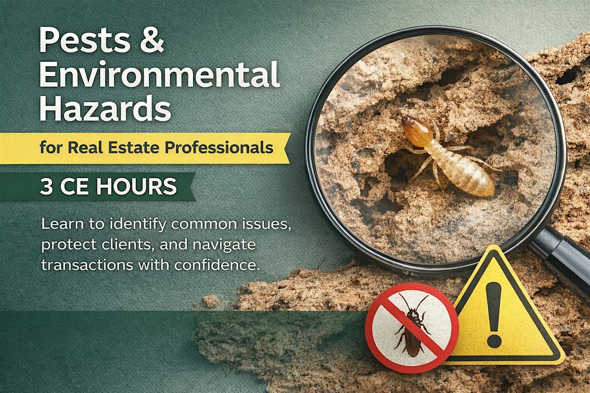 This course is designed to help real estate professionals better understand the impact of pests and environmental hazards on residential properties and real estate transactions.