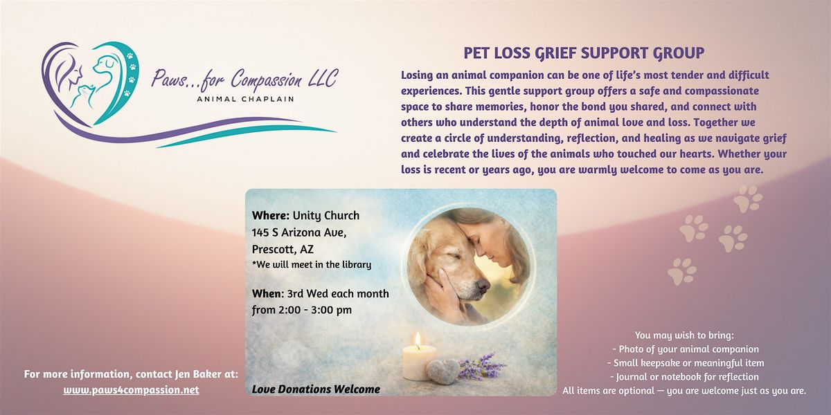 This Pet Loss Grief Support Group offers a compassionate space to share, reflect, and connect with others who understand the human-animal bond.