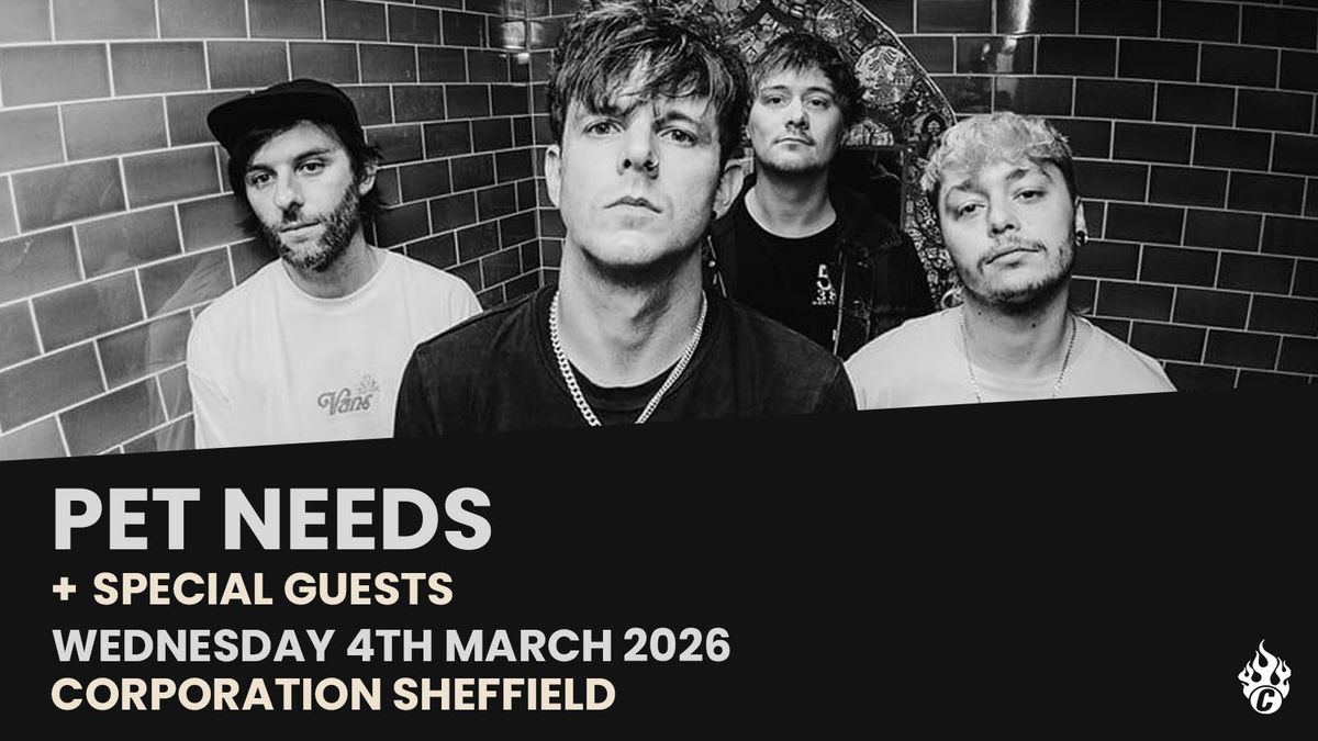 Founded by brothers Johnny and George Marriott, PET NEEDS’ career has been sky-rocketing ever since the release of their acclaimed debut ‘Fractured Party Music’ back in 2021. From getting signed to Xtra Mile Recordings, to sold out shows, rave reviews to rabid fans, and embarking on extensive global tours; demand for these four lads from Essex has been on a trajectory with the stratosphere. Joined by Jules (drums) and Ryan (bass), the band released their third studio album, ‘Intermittent Fast Living’ in February 2024 which entered the Official Album Chart at Number 17.Having attracted attention with their relentless live shows, PET NEEDS have toured extensively across the UK, US and Europe supporting Frank Turner, The Lottery Winners, The Bouncing Souls, Flogging Molly, Skinny Lister, The Hives, Art Brut and Laura Jane Grace. Their own headline tours in the UK have previously sold out and the fourth instalment of their annual Fractured Party Festival takes place in May 2025 with two acoustic shows at The Old Church in Stoke Newington and a full-on electric show at The Garage in London. They’ve played the Main Stage at Beautiful Days and Bearded Theory Festivals and won over fans at 2000Trees, Dot To Dot, The Salty Dog Cruise and many more.
