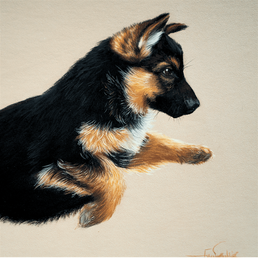 Using pastel pencils, we will be creating a leaping German Shepherd puppy whilst thinking about value compression and economising on our details. All of this will be thoroughly explained on the day and help you understand how to make your portraits more life-like and captivating without over working them.