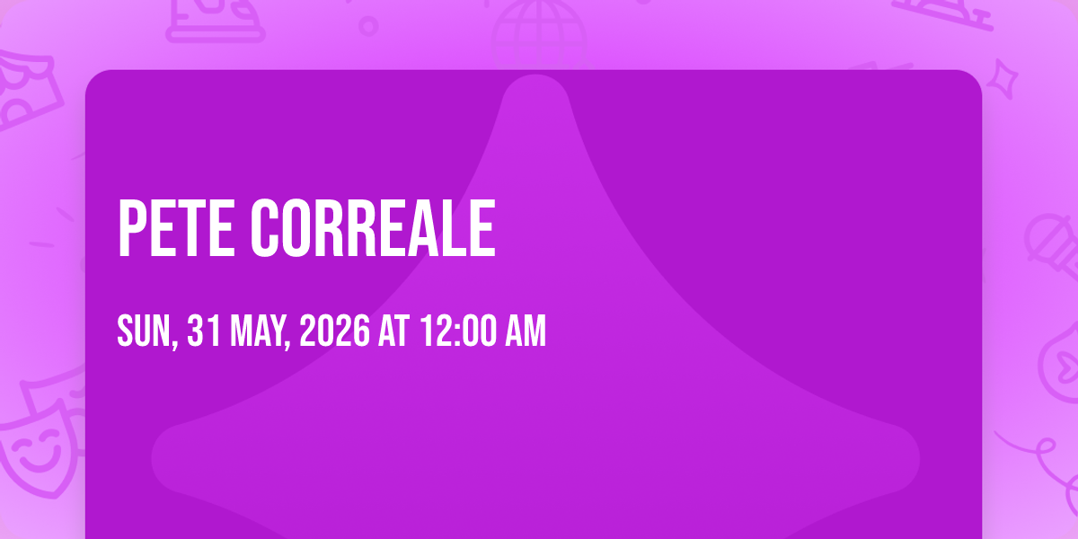 π Location: 37.6059, -77.5703π Prepare to be amazed at Pete Correale, the most anticipated gathering of the season! π Set against the stunning backdrop of The Tin Pan in vibrant Richmond, VA, this event promises to redefine your expectations. π Mark your calendars for May 31st, 2026 at 12:00 AM and get ready to immerse yourself in an atmosphere of wonder and excitement. β¨ From the moment you arrive, you'll be transported into a world where memories are made and stories come alive. They have crafted an experience that perfectly harmonizes entertainment, innovation, and community spirit. π Join us as we create moments that will be discussed for years!