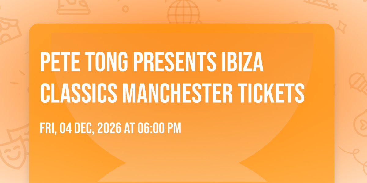 Pete Tong at Manchester AO Arena๐ Be part of history at Pete Tong Presents Ibiza Classics Manchester Tickets, an extraordinary gathering that will captivate your imagination! ๐๏ธ The prestigious Manchester AO Arena in Manchester, EN sets the stage for an unforgettable experience on December 4th, 2026 at 06:00 PM. โจ They are bringing together the finest elements of entertainment and innovation to create moments that will take your breath away. From the moment you arrive, you'll be immersed in an atmosphere of wonder and excitement. ๐ฏ This carefully planned event ensures every guest experiences something truly special. ๐ซ Get your tickets at 117.82 EUR. ๐ Early booking is recommended for this must-attend event of the season!