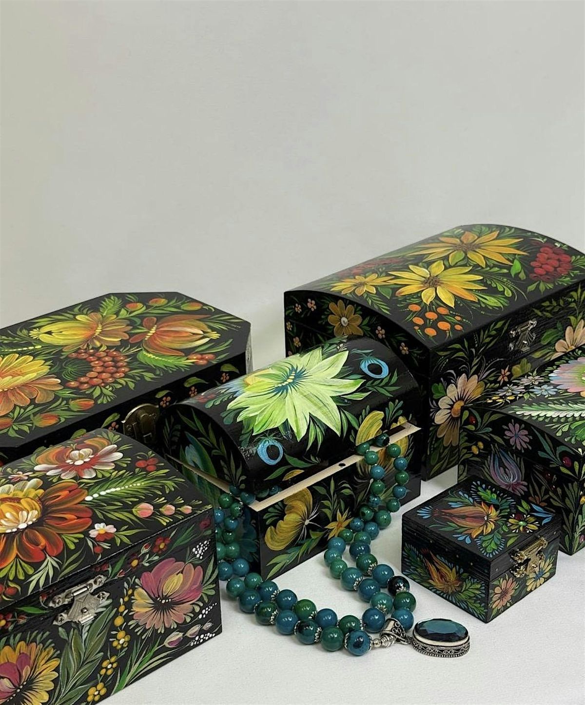 You will be able to paint a Petrykivka pattern on a wooden box, wooden board, or canvas while learning traditional brush techniques and composition.