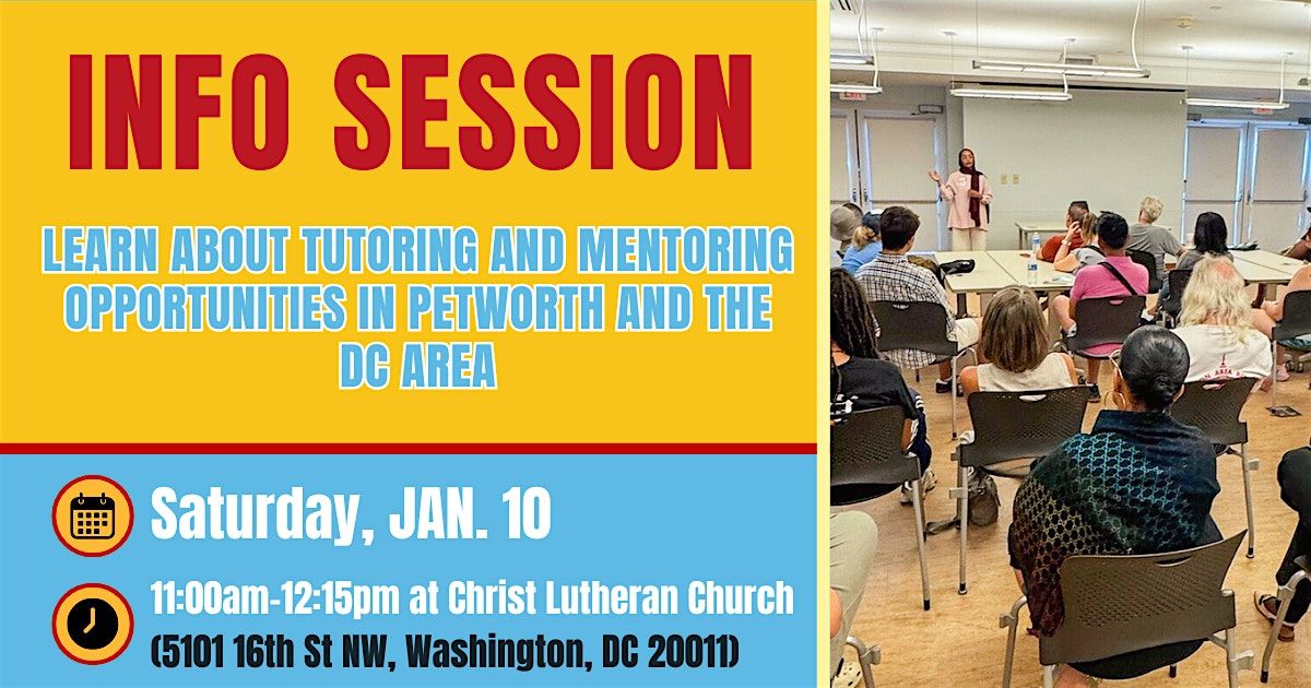 Live in or near Petworth in Northwest DC? Take an active part in building a better world and learn about becoming a mentor or tutor with us!