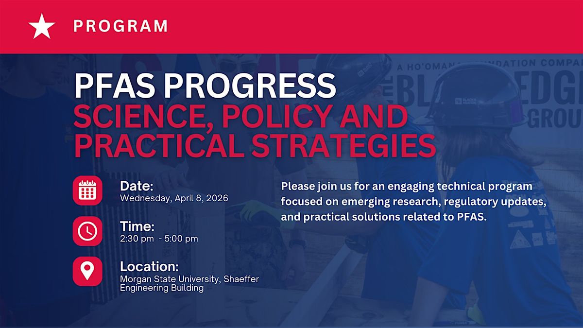 The event begins with registration and networking, followed by opening remarks and a series of targeted presentations. Attendees will hear updates from the Maryland Department of the Environment (invited), learn about recent PFAS studies from the U.S. Geological Survey, and gain insight into Morgan State University’s ongoing research and laboratory capabilities. The program concludes with a discussion from EA on scalable, real‑world approaches to PFAS site management.