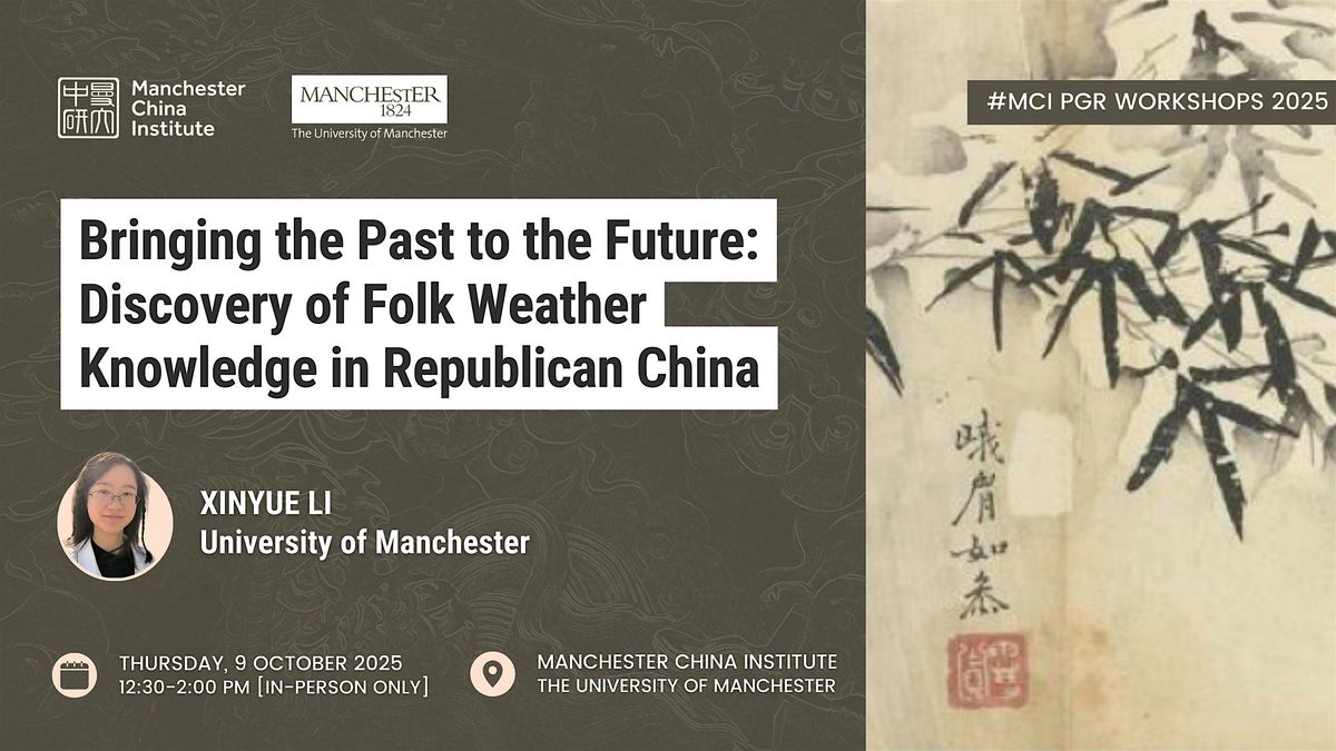 MCI’s PGR workshops are lunchtime seminars held in person at the Manchester China Institute. They seek to bring together students, faculty, and staff who can best provide feedback as postgraduate researchers develop their ideas. Free lunch will be provided.