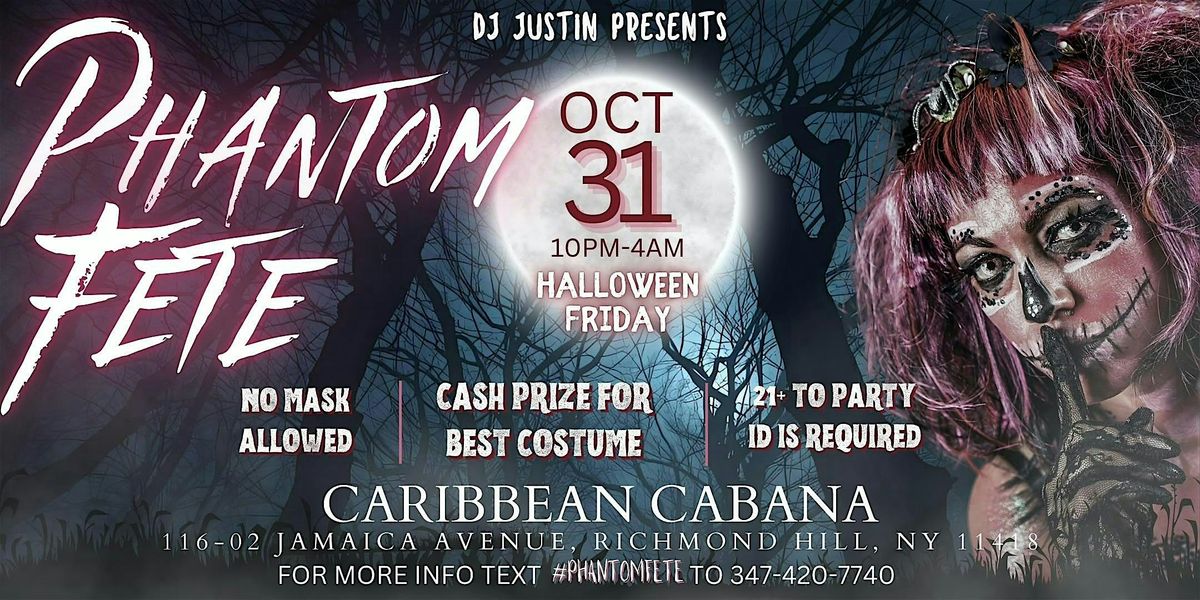 Get ready for a spine-tingling, soul-shaking, and unforgettable night at Phantom Fete 2025! Hosted by DJ Justin, this Halloween party is bringing the heat of the Caribbean to the spookiest night of the year. Picture this: a haunted vibe, and a dance floor filled with electrifying energy—where the ghosts and phantoms come alive!