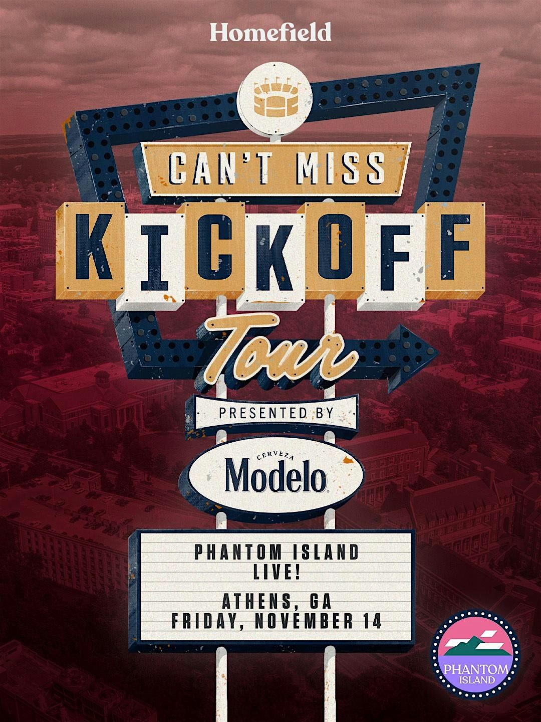 All your friends from your phone are coming together for an all-inclusive evening of sipping, shopping, and Dawgs football. Join Homefield, the Internet's most online Georgia football apparel merchant, Phantom Island, and special guests Lucy Rohden and Graham Coffey for Phantom Island LIVE in Athens.