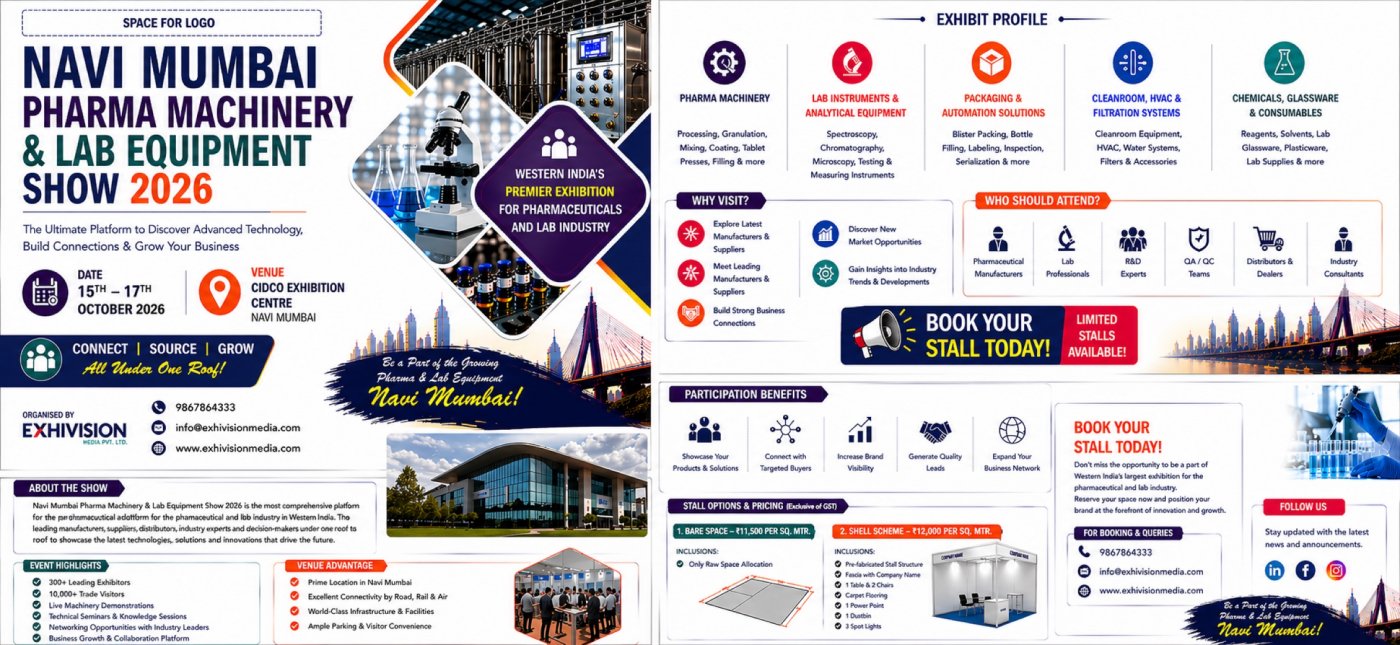 This exhibition promises to be a landmark industry gathering offering unmatched exposure, lead generation, and business growth opportunities across India’s most active pharmaceutical regions.