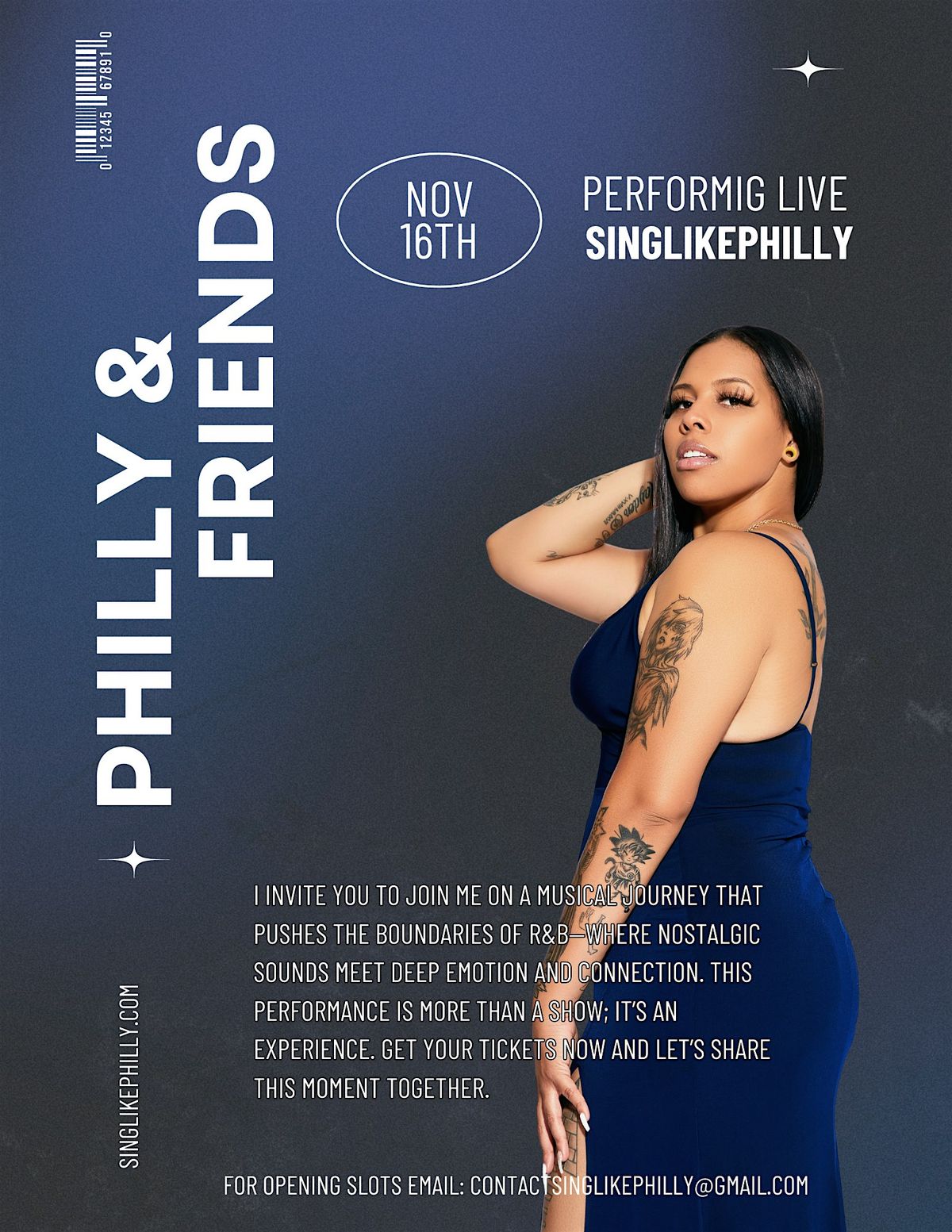 Welcome to Philly & Friends—a night designed to create unforgettable memories. This special in-person event brings you closer to SingLikePhilly, offering a chance to connect not only with her music but also with the people who have been part of her journey. Whether you’re a longtime supporter or discovering her sound for the first time, this intimate experience invites you to step inside Philly’s world and celebrate her artistry. There will be a live band and networking opportunities. Mark your calendars and join us for a night you won’t forget at Philly & Friends. Food and drinks will be available for purchase.