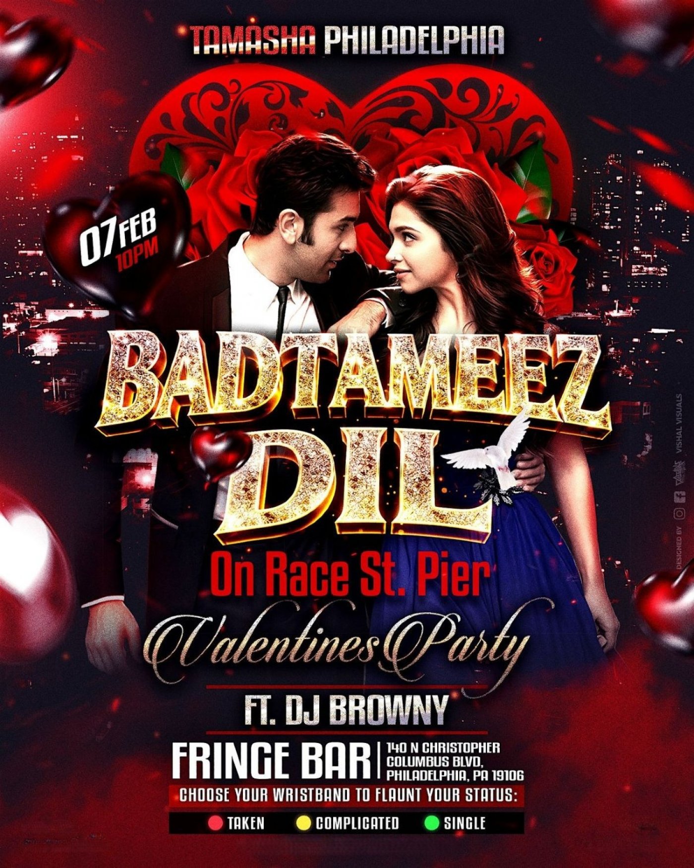 This Valentine’s season, step into a red-hot, romantic Desi nightclub experience where Bollywood vibes, high-energy beats, and playful chemistry take over the night. Whether you’re celebrating love, navigating something complicated, or fully single and ready to mingle — BADTAMEEZ DIL is the place to be in Philadelphia.