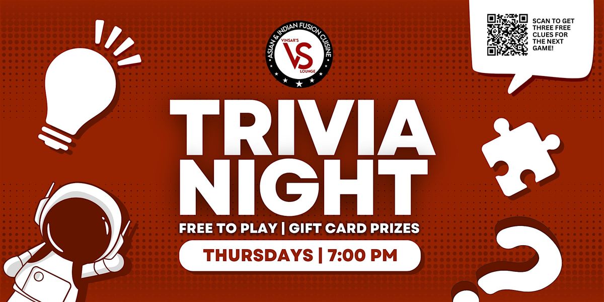 Join us every Thursday at 7pm for free live trivia in Phoenix at Vinsar's Lounge! It’s always free to play, and the top teams win gift card prizes.