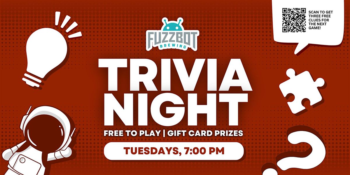 Join us for free live trivia every Tuesday at 7pm at Fuzzbot Brewing in Phoenix, AZ! Free to play, and top teams win gift card prizes!