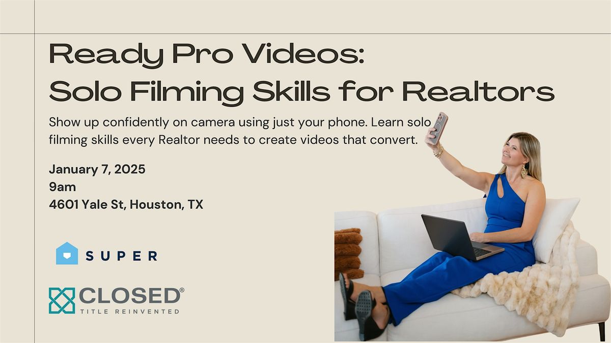 In this one-hour class, Realtors will learn how to film polished, engaging videos completely on their own using just a smartphone, tripod, and simple lighting setup. This course breaks down exactly how to look confident on camera, sound clear, and frame videos correctly so your content feels professional, authentic, and ready to post.