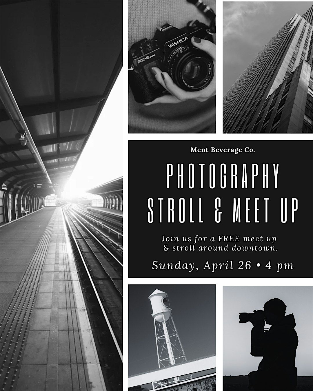 Our Photo Meet up & Stroll is BACK & still Free - meet at Ment Beverage Co. Walk with fellow photographers, share techniques and skills, and enjoy a stroll around atc, downtown and more. Share your images with other photographers.