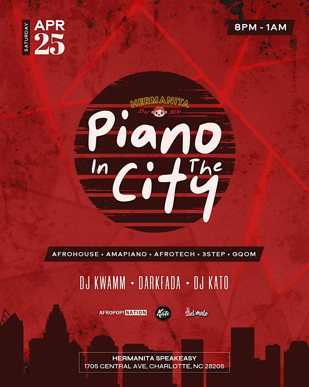Enjoy authentic Afro-House vibes, no chaser! Piano In The City is an immersive Amapiano, Afro-House and Afrotech party experience with unmatched vibes kicking off the spring season SAT, 4/25 @ Hermanita Speakeasy!