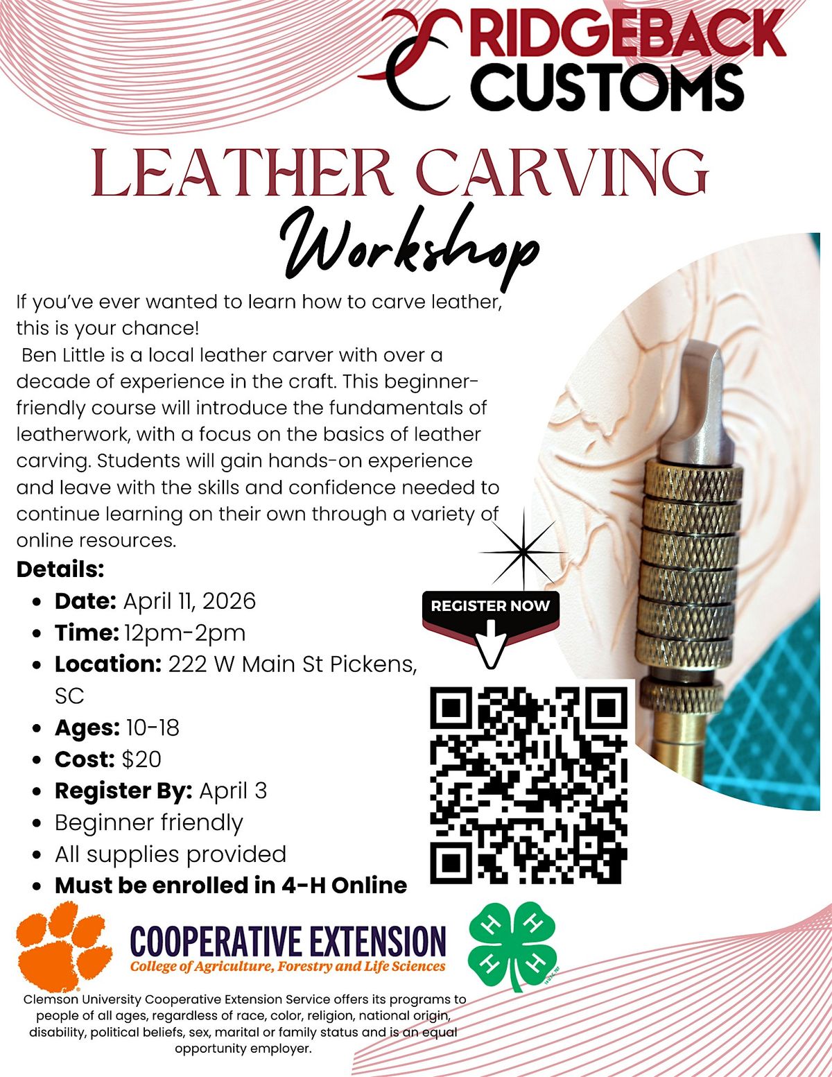 Pickens County 4-H Leather Carving Workshop with Ridgeback Customs 2026