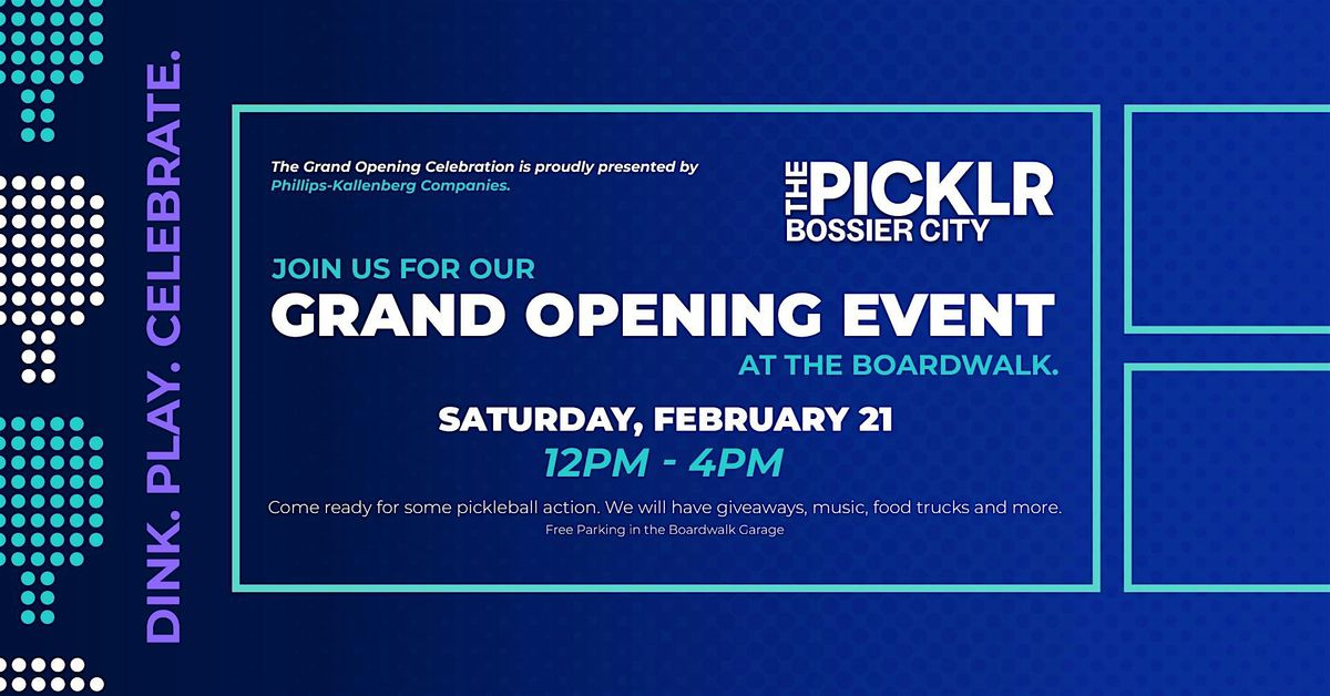 Get ready for the grand opening of Picklr in Bossier City! Join us in person for a fun-filled day of pickleball, laughs, and great vibes. Whether you’re a seasoned player or new to the game, come check out the new spot and meet fellow enthusiasts. Don’t miss out on the excitement—let’s make this opening unforgettable!