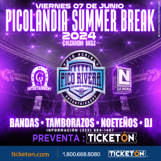 Buy PICOLANDIA SUMMER BREAK 2024 tickets on June 07,2024 at 06:00 PM at Pico Rivera Sports Arena. Find tickets for upcoming events with real-time availability and a variety of prices at UNATION.