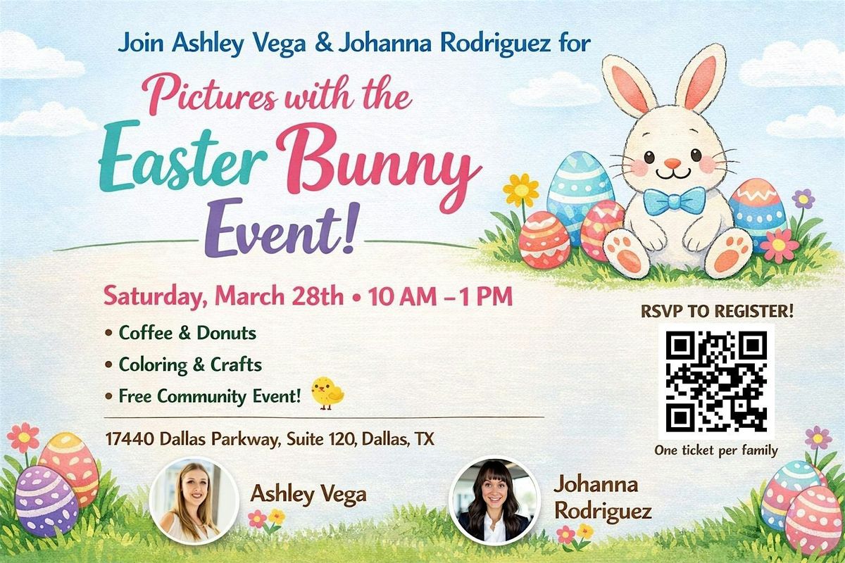 Looking for free Easter events in Dallas for families? Join us for Pictures with the Easter Bunny, a fun and welcoming community Easter event perfect for kids and parents alike.