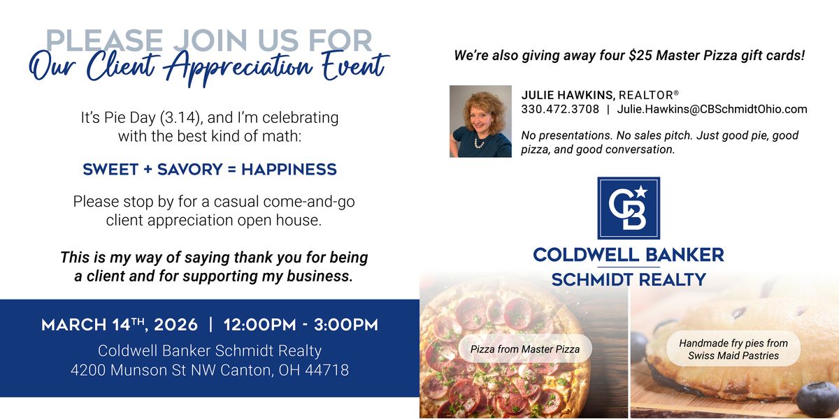 Get ready to indulge in a delicious mix of sweet and savory pies at our Client Appreciation Open House - it's going to be pie-tastic!