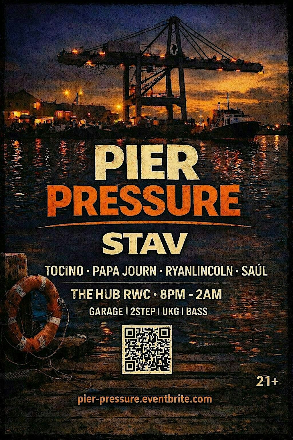 Join us for PIER PRESSURE, a late-night voyage through bass music, house, and UK garage featuring a stacked lineup of selectors ready to shake the hull.