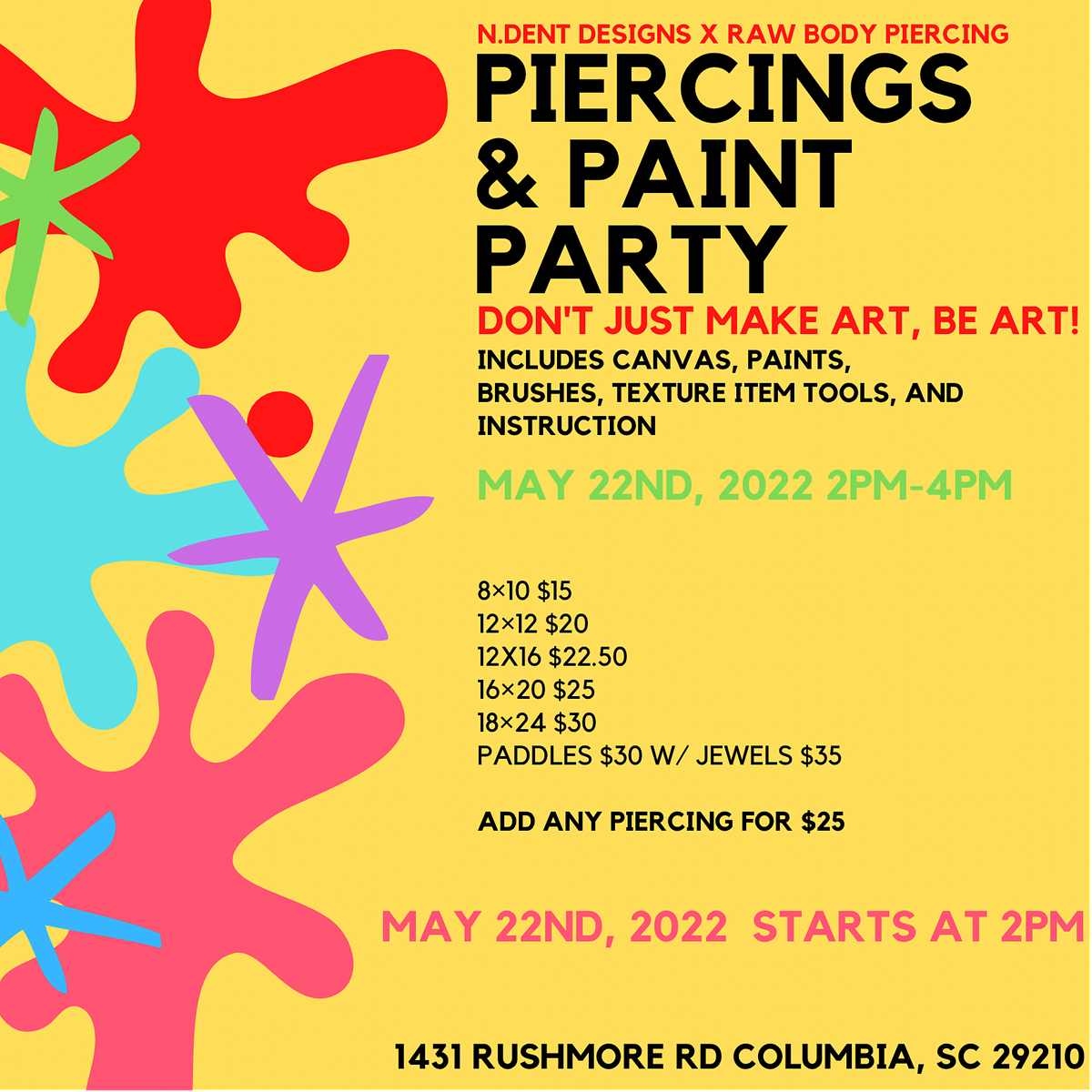 Hosted by N. Dent Designs and Columbia's #1 Piercing Studio RAW Body Piercing