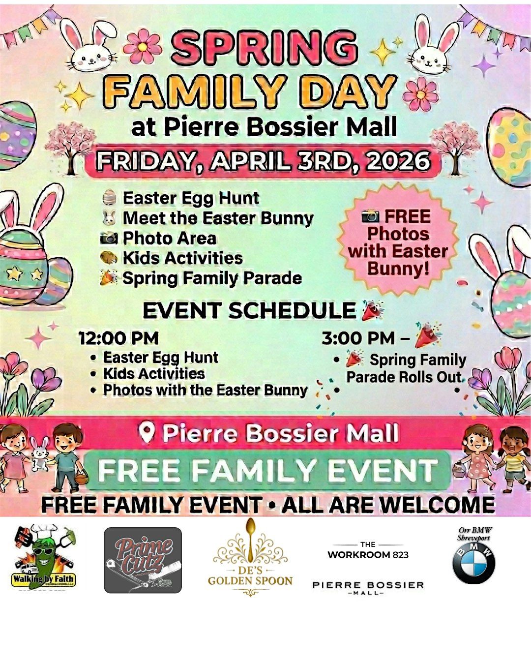 Join us for Spring Family Day at Pierre Bossier Mall, a free, family-focused experience packed with fun, community, and memories you’ll actually want to keep.
