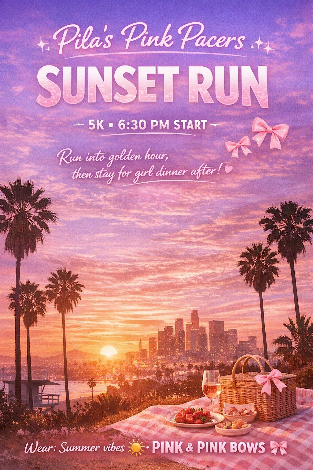 Lace up and meet us at 6:30 PM for a feel-good 5K sunset run with the Pink Pacers 💕