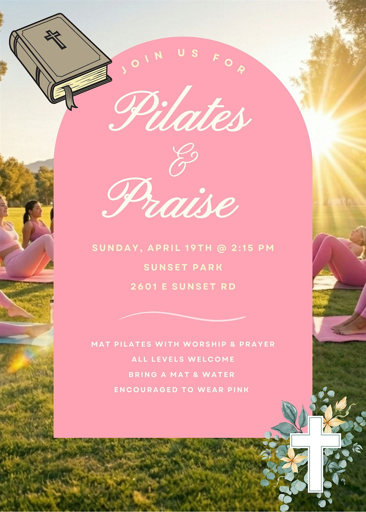 Pilates & Praise is a faith-centered wellness event designed to refresh your body, mind, and spirit. Join us for an uplifting afternoon that incorporates prayer, word, and a pilates workout to strengthen and energize your body. It is a welcoming space full of encouragement and community.
