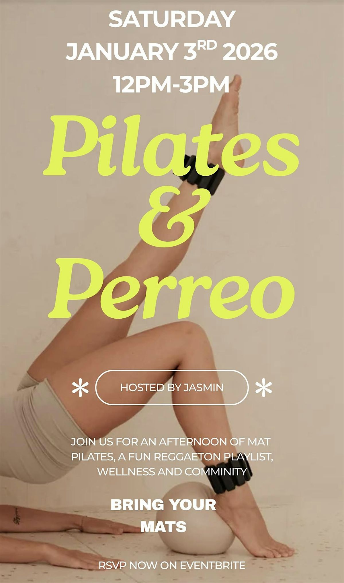 Feel the energy of Reggaeton while strengthening and centering your body through Pilates! Saturday January 3rd 2026 12pm-3pm.About this Event