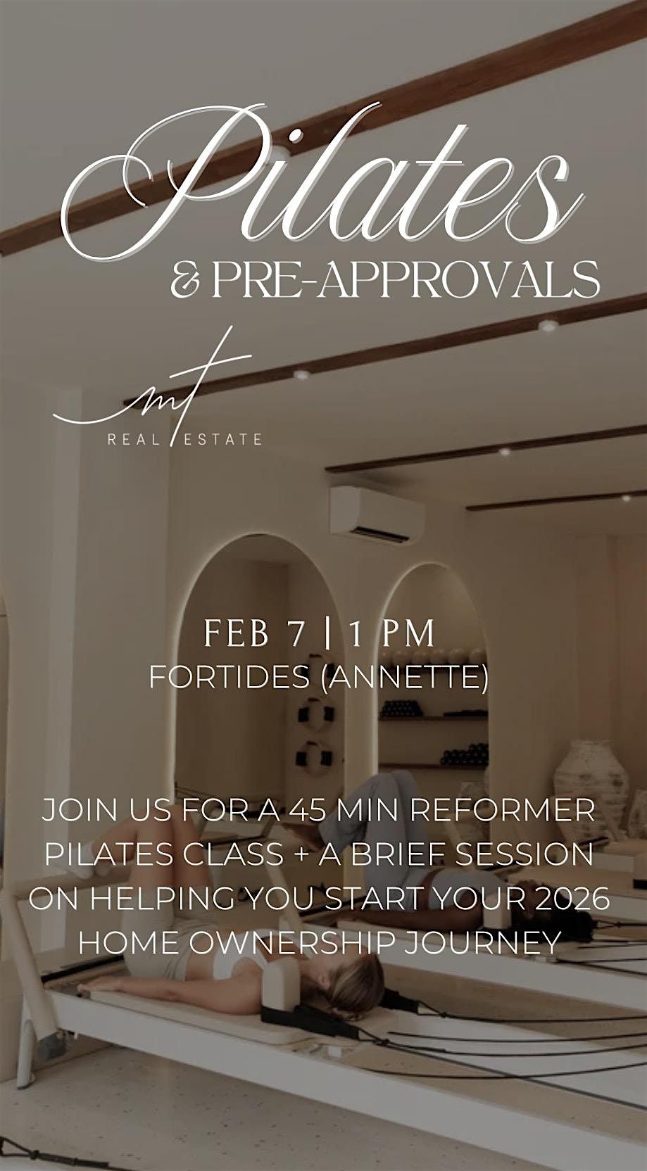 Join us for Pilates and Pre-Approvals, a community-driven event that brings together movement, education, and connection. Enjoy a guided Pilates class, then sit down with trusted real estate and mortgage professionals to learn how pre-approvals work and how they can set you up for success in today’s market.