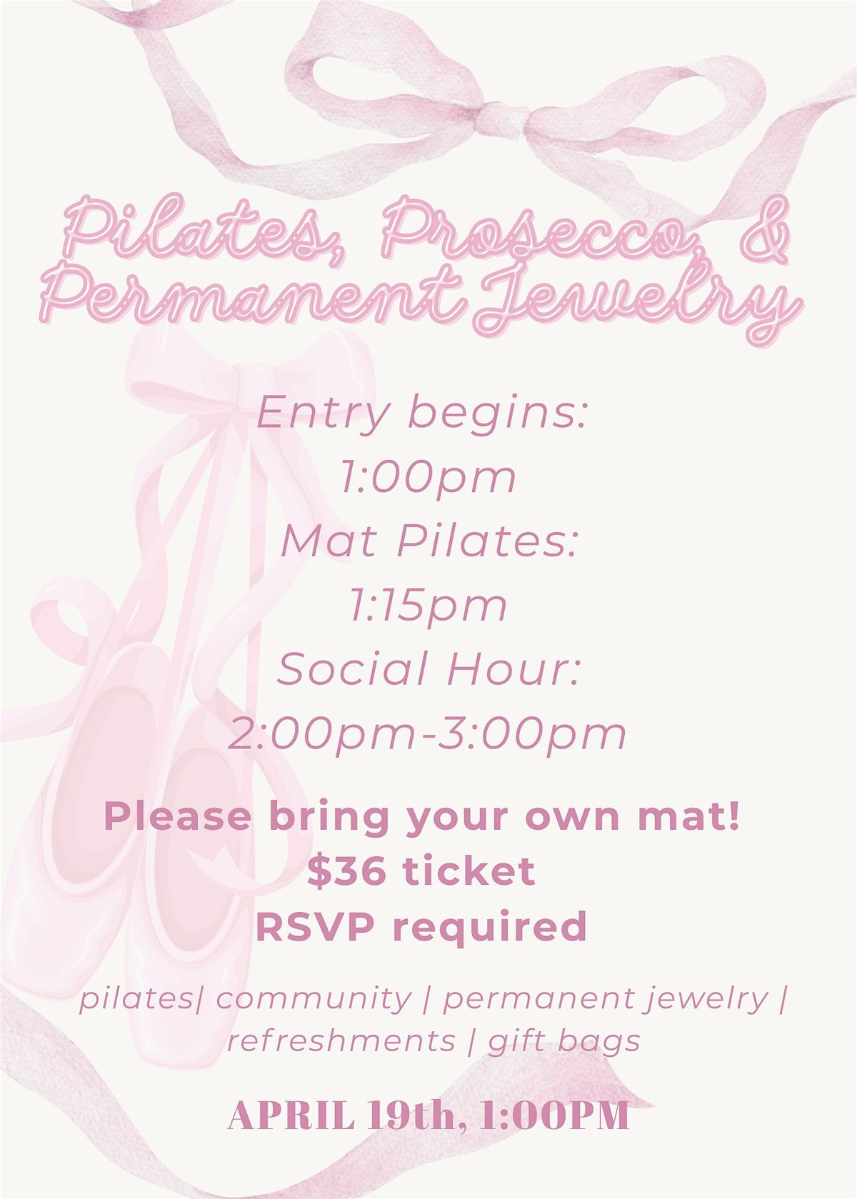 Pilates, Prosecco, & Permanent Jewelry β¨About this Event