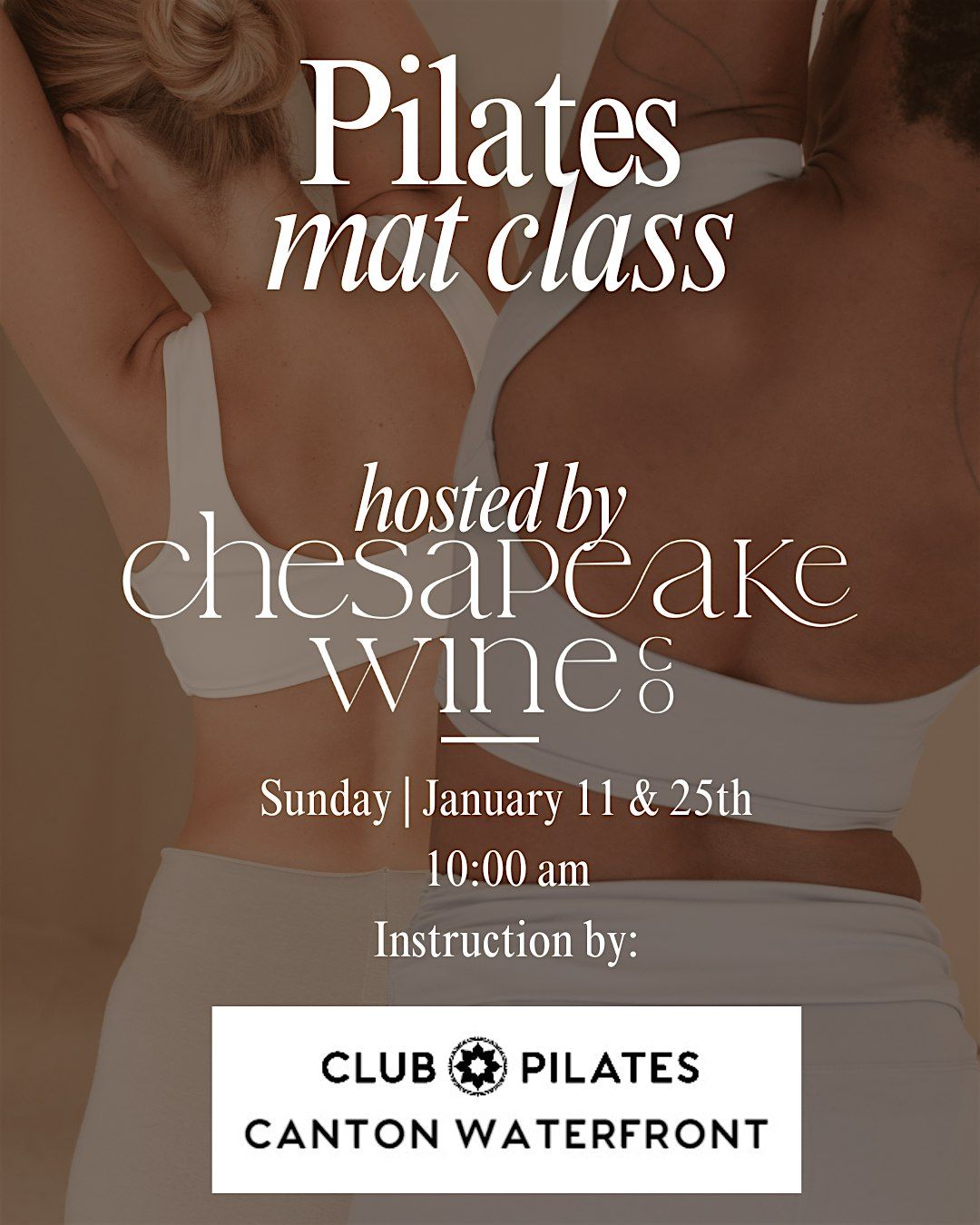 Enjoy a Pilates Mat Class at Chesapeake Wine Company, social to follow.