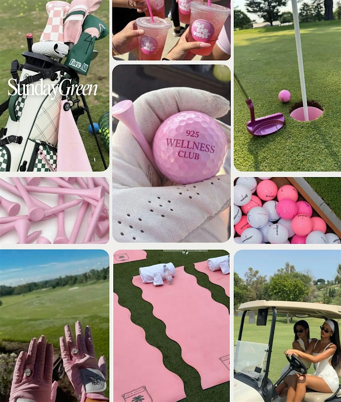 Encouraged color palette: pink, green and white.