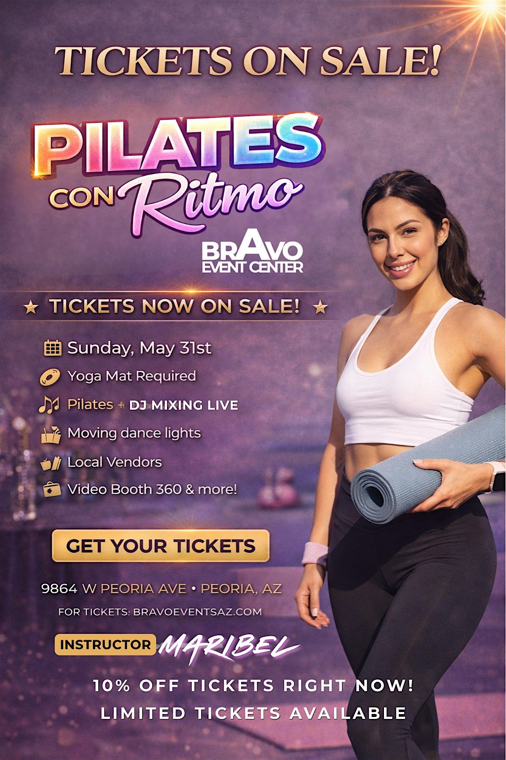 We’ll kick things off with a Reggaeton warm-up mix by DJ A-Town to get your body moving and your energy up. Then, take it into a fun and engaging Pilates session hosted by Maribel, designed for all levels.