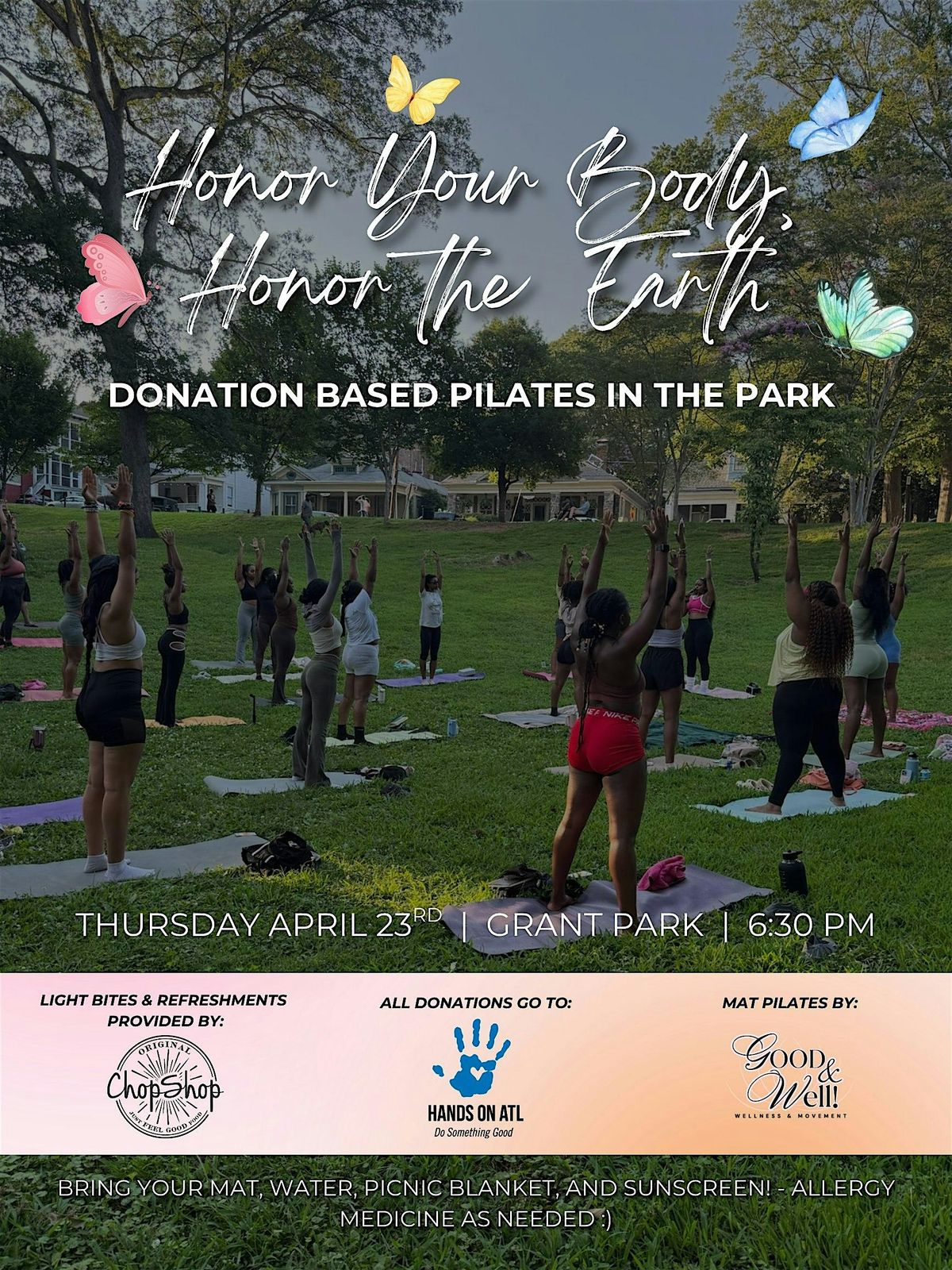 Honor the Earth, Honor Your BodyAll donations will go to "Hands on Atlanta"! Come enjoy a 50 minute, beginner friendly pilates class that will encourage you to slow down and embrace your core! The chop shop will be sponsoring this class - enjoy a refreshing snack after class! Please bring your mat, water, and wear sunscreen! Some other suggested items are a picnic blanket, sunglasses, and allergy medicine as needed.