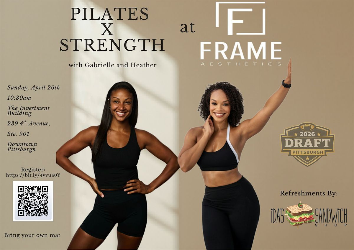 Join Gabrielle and Heather at Frame Aesthetics in Pittsburgh for a Pilates x Strength workout that'll have you feeling stronger than a first-round pick.