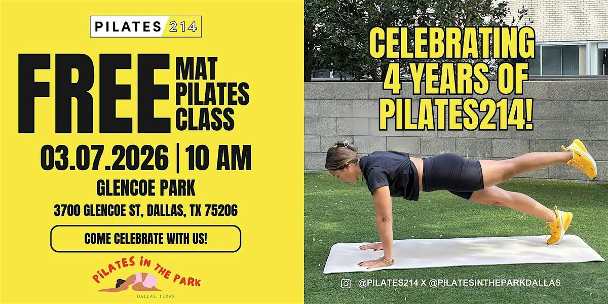 Get ready to stretch and strengthen with Pilates214 X Pilates in the Park at Glencoe Park. This energetic and full-body class is perfect for all levels. Bring your mat and let’s move together!