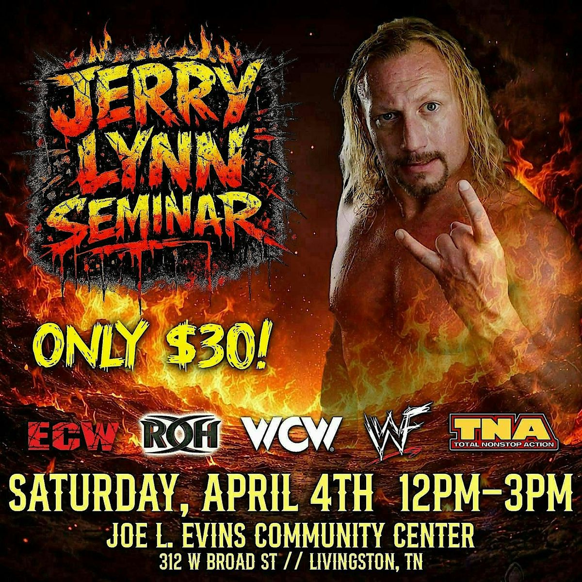 Seminar with the legendary ECW/WWE/TNA/WCW/ROH/AEW star, Jerry Lynn.About this Event