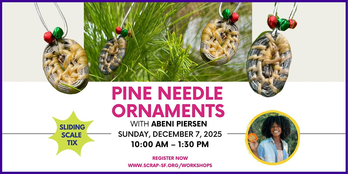 In this workshop, participants will learn the fundamentals of coiling with pine needles, a traditional basketry technique that has been used across cultures for centuries. Using pine needles and colorful thread, you’ll create a small woven ornament that can be hung on a tree or displayed year-round.