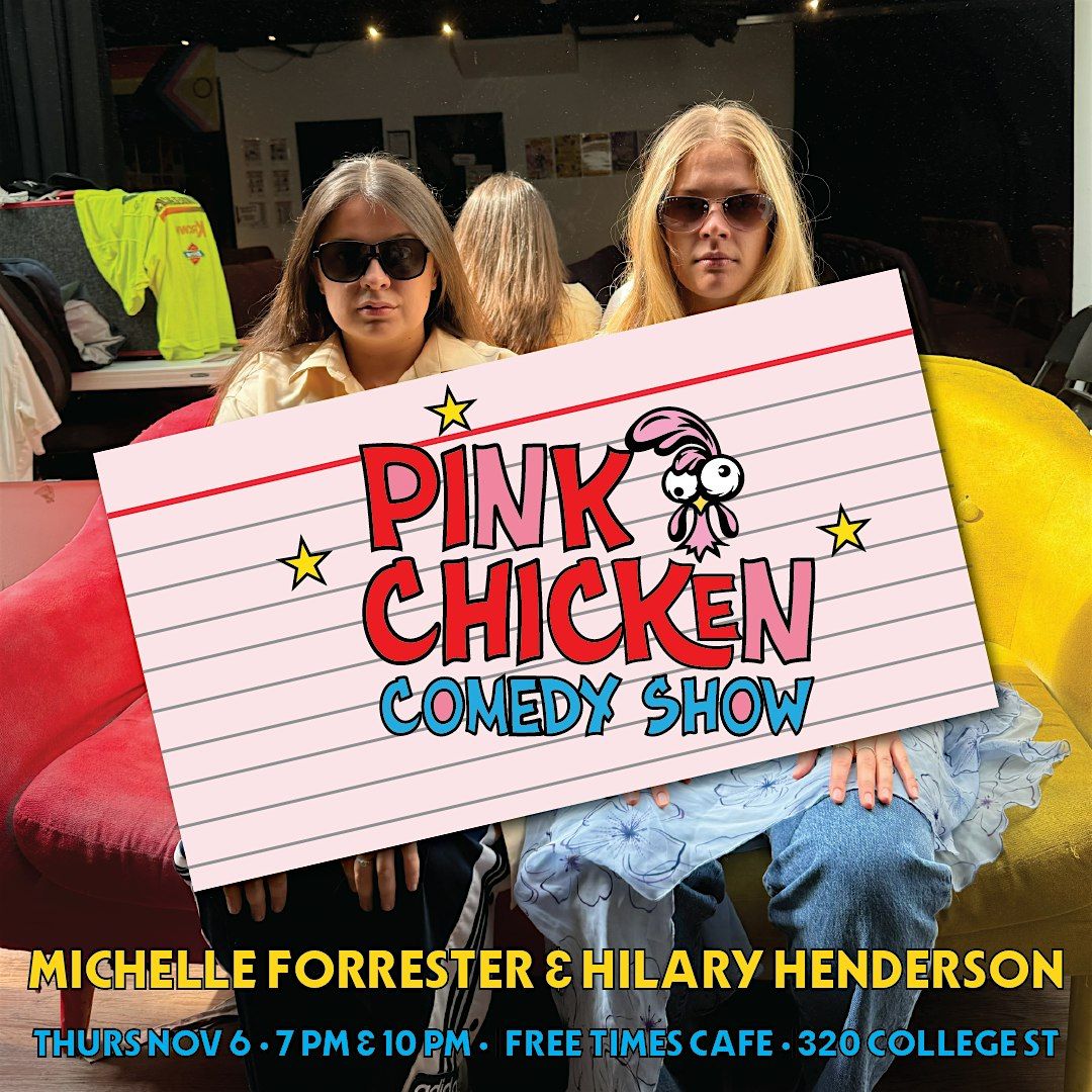 Created in 2024 by comedians Hilary Henderson and Michelle Forrester, Pink Chicken features an all-female lineup of standup comedians and a one-of-a-kind interactive audience segment.