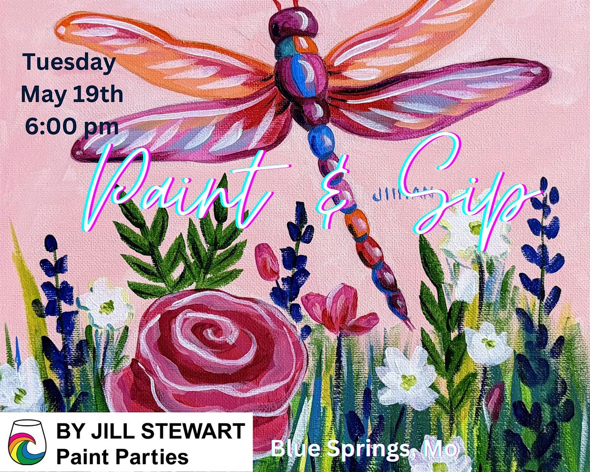 Paint this pretty pink dragonfly fluttering around the flowers. Love these colors! All art supplies and instruction are included. I draw the main subject for you. $38/person. Sign up now!