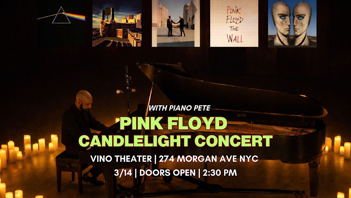 Join Piano Pete for an intimate candlelight concert at the Vino Theater in Brooklyn on March 14, 2026. Experience a unique solo piano journey through Pink Floyd’s timeless masterpieces, from iconic albums like "The Dark Side of the Moon" to "Wish You Were Here." With a relaxed atmosphere and soothing ambiance, this event is perfect for both devoted Pink Floyd fans and those seeking a peaceful musical escape. Doors open at 2:30 PM. Don’t miss this captivating evening of music and light!
