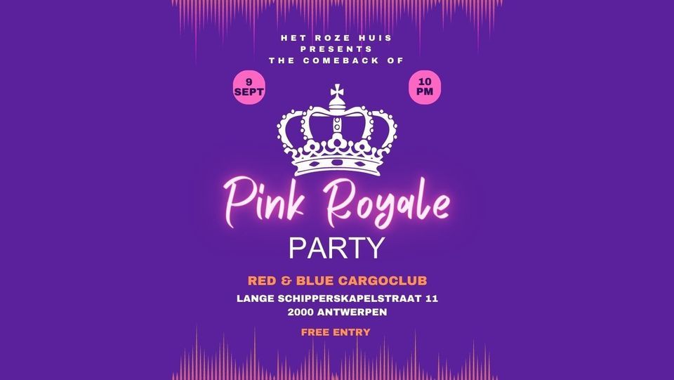 Pink Royale is back! Het Roze Huis Antwerpen, haar verenigingen en werkgroepen nodigen iedereen uit om er op zaterdag 9 september een groot feest van te maken in Red & Blue Cargo Club!