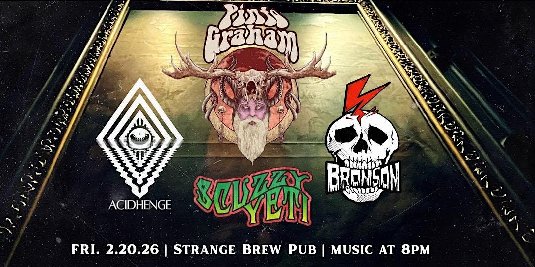 Gibberish Productions presents Pinto Graham | Scuzzy Yeti | Bronson | Acidhenge at Strange Brew Pub on Friday 02.20.26!