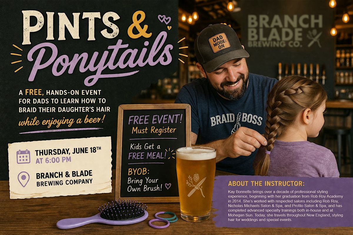 Looking for a fun, meaningful way to spend time with your kid before Father’s Day? Join us at Branch & Blade Brewing Company for Pints & Ponytails: a laid-back, hands-on class designed just for dads.