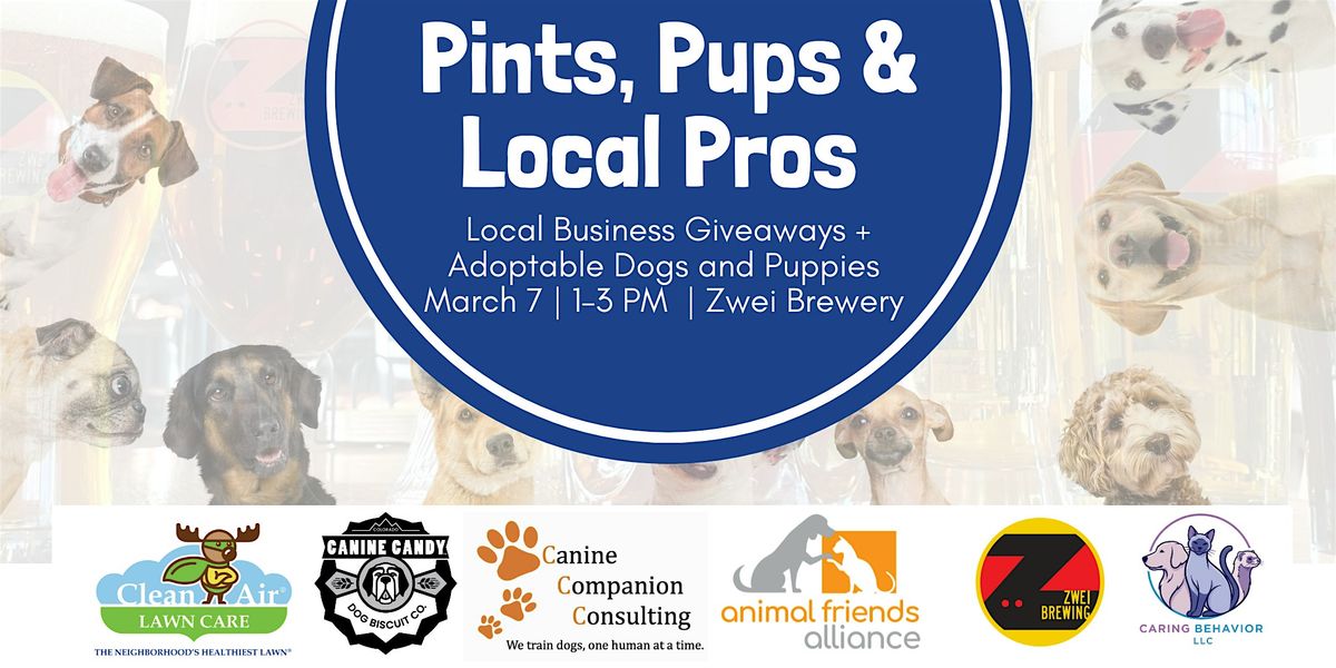 Join us at Zwei Brewery for Pints, Pups & Local Pros, a fun afternoon with local pet-friendly and pet-focused businesses, prize drawings from each vendor, and adoptable dogs and puppies from Animal Friends Alliance.