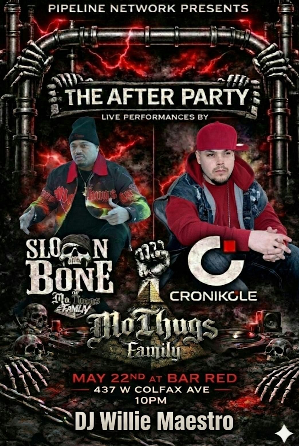 The Pipeline presents The Afterparty with live performances by Sloan Bone Of Mo Thugs and Cronikole with DJ Willie Maestro spinning!